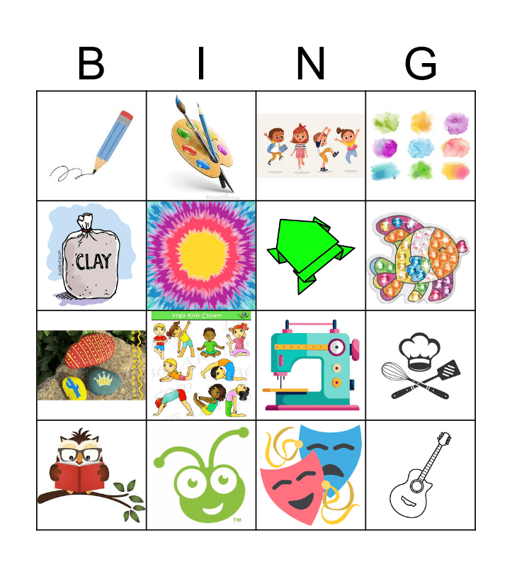 This bingo card has 16 images.