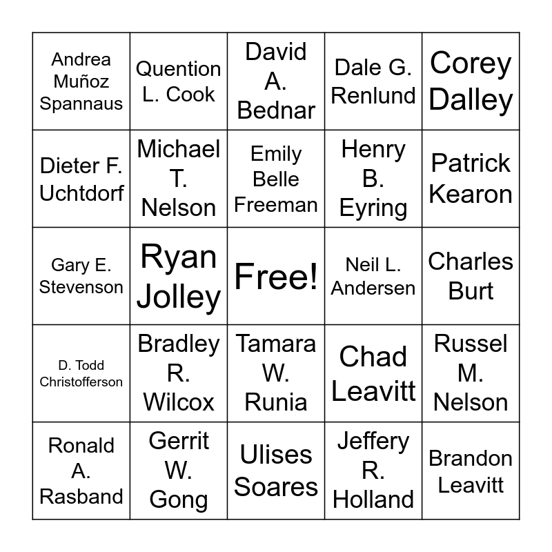 General Church Leadership | General Authorities of the Church of Jesus Christ of Latter-Day Saints | General Authority BINGO | First Presidency & Twelve Apostles | Apostle Bingo