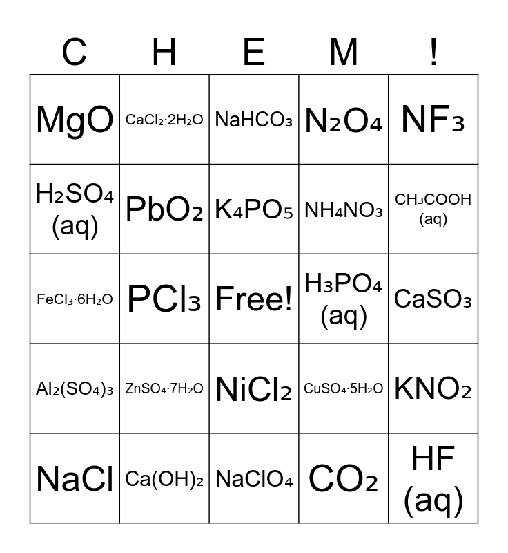 Nomenclature Bingo! | Nomenclature Bingo! | Nomenclature Bingo! | Nomenclature Bingo! | CHEMINGO