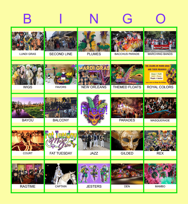 Mardis Gras Bingo Card