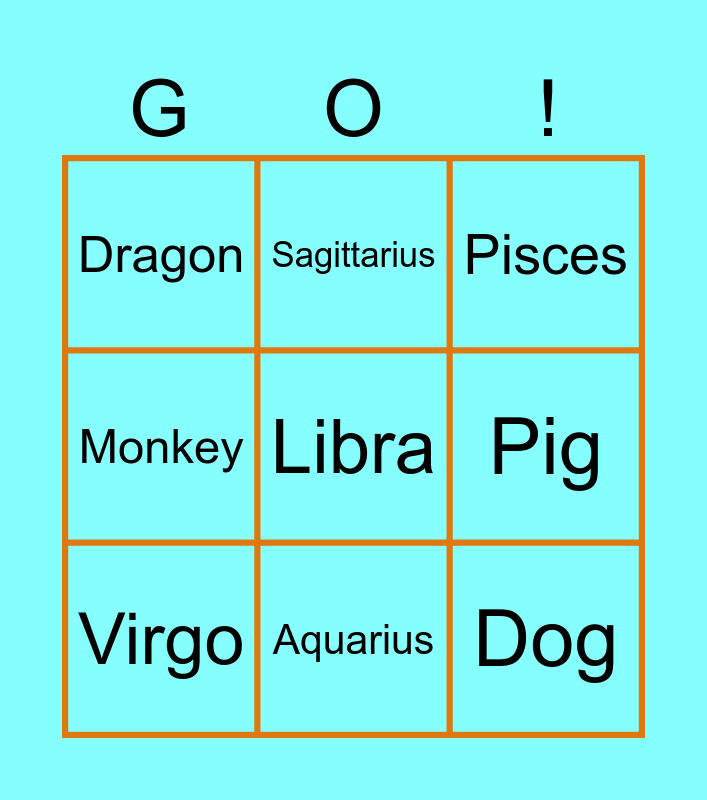 This bingo card has 34 words: Aries, Taurus, Gemini, Cancer, Leo, Virgo, Libra, Scorpio, Sagittarius, Capricorn, Aquarius, Pisces, Air element, Earth element, Water element, Fire element, 2025, trait, Rat, Rabbit, Ox, Tiger, Dragon, Snake, Horse, Goat, Monkey, Rooster, Dog, Pig, Chinese zodiac sign, my birthday is on, I was born in 2011 and I was born in 2012.