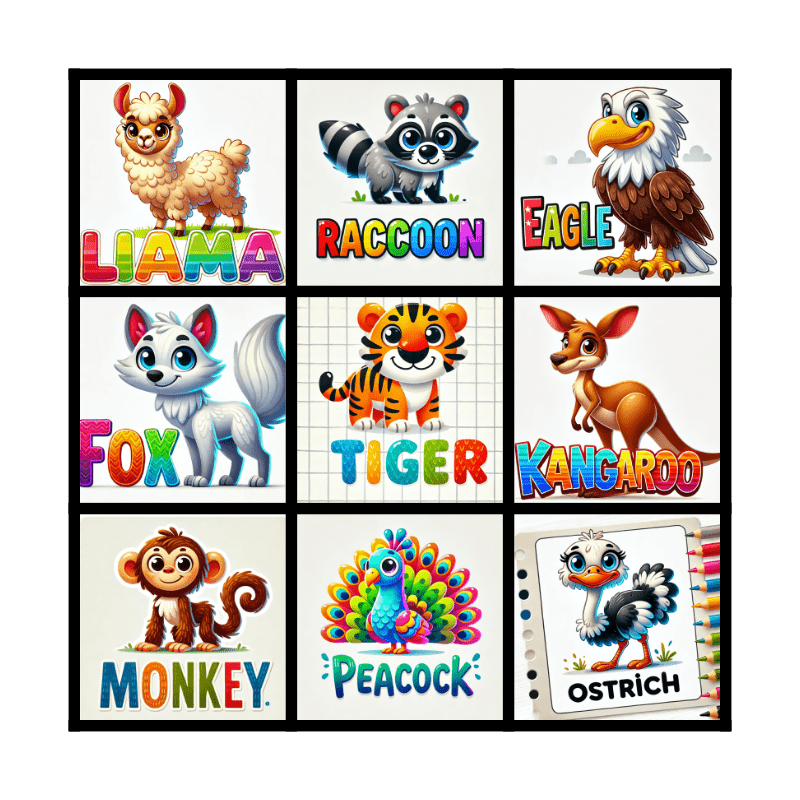 ANIMALS! | leste beste BINGO fisje | Gym Vocabulary | Instrumenten Bingo | Graissouill-o-rama Bingo