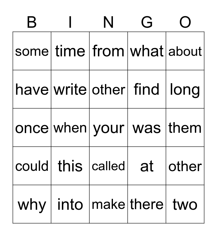 This bingo card has 35 words: with, part, you, write, called, what, have, she, other, look, once, about, each, it, some, was, there, when, could, your, at, why, other, into, from, long, two, said, find, them, words, make, this, time and we.
