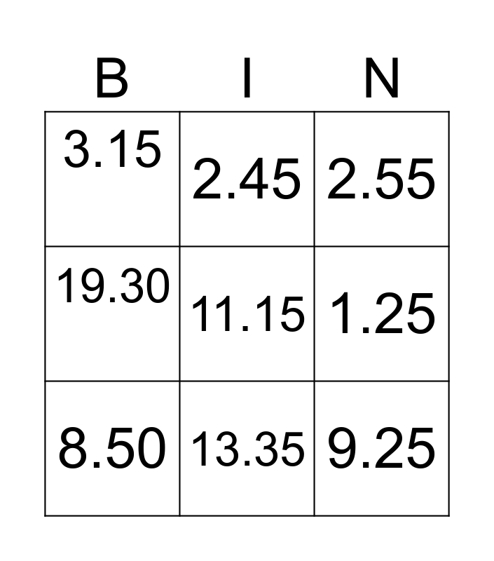 This bingo card has 23 words: 10.45, 9.05, 13.35, 12.20, 11.15, 3.15, 1.25, 2.45, 3.35, 11.00, 8.30, 9.25, 10.20, 13.45, 19.00, 10.10, 2.55, 1.10, 8.50, 7.40, 19.30, 4.25 and 6.30.