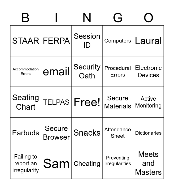 STAAR Trainiing BINGO | State Test Security Training | State Test Security Training | State Test Security Training | State Test Security Training