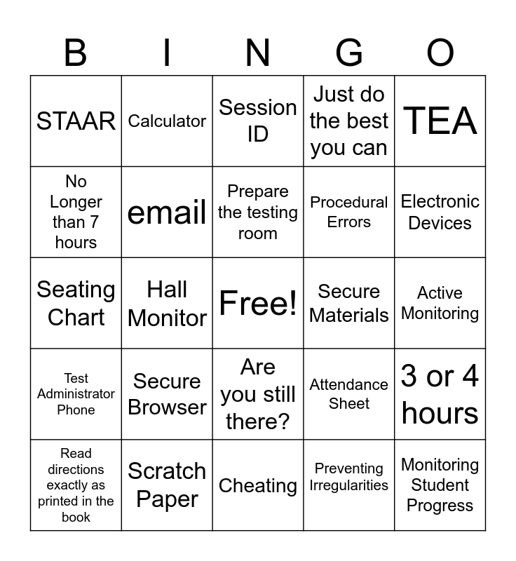 State Test Security Training | State Test Security Training | State Test Security Training | State Test Security Training | STAAR Bingo
