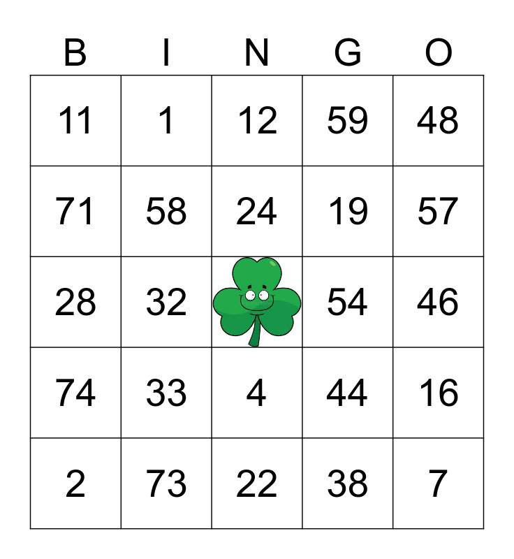This bingo card has a free space and 24 words: 33, 73, 24, 2, 48, 11, 71, 1, 54, 4, 19, 28, 44, 16, 58, 38, 46, 12, 57, 32, 7, 74, 59 and 22.