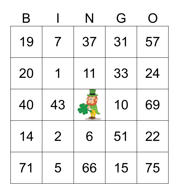 This bingo card has a free space and 24 words: 2, 5, 11, 71, 57, 19, 20, 7, 10, 6, 33, 40, 51, 22, 1, 15, 69, 37, 24, 43, 75, 14, 31 and 66.