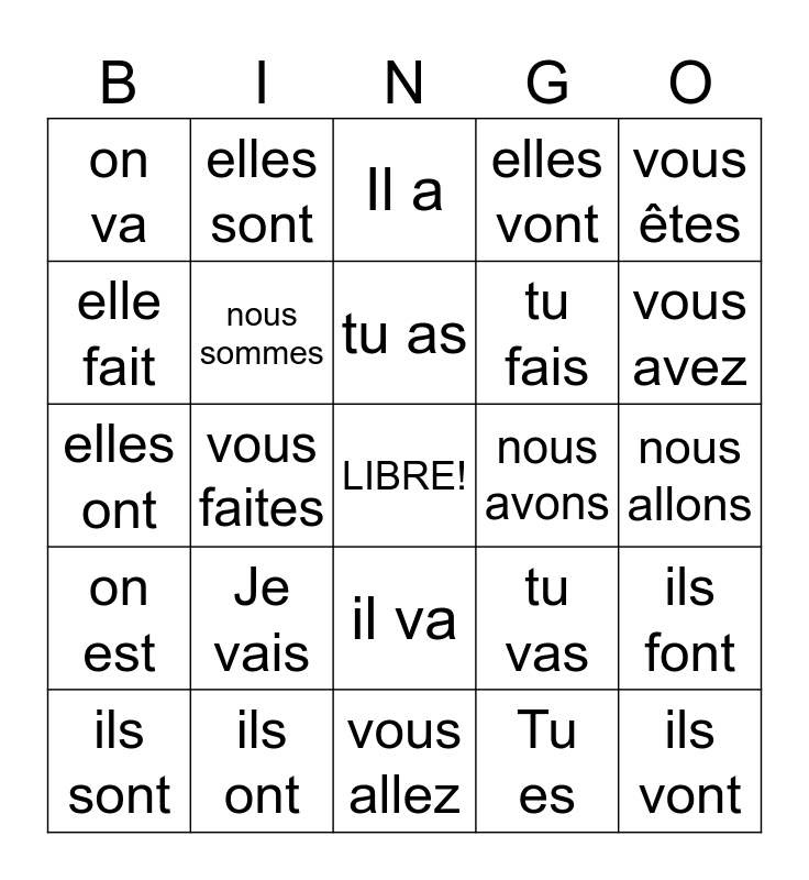être-avoir-aller-faire-pouvoir | Les verbes simples | Franse werkwoorden | Avoir, Être, Aller, et Faire BINGO | Les Verbes