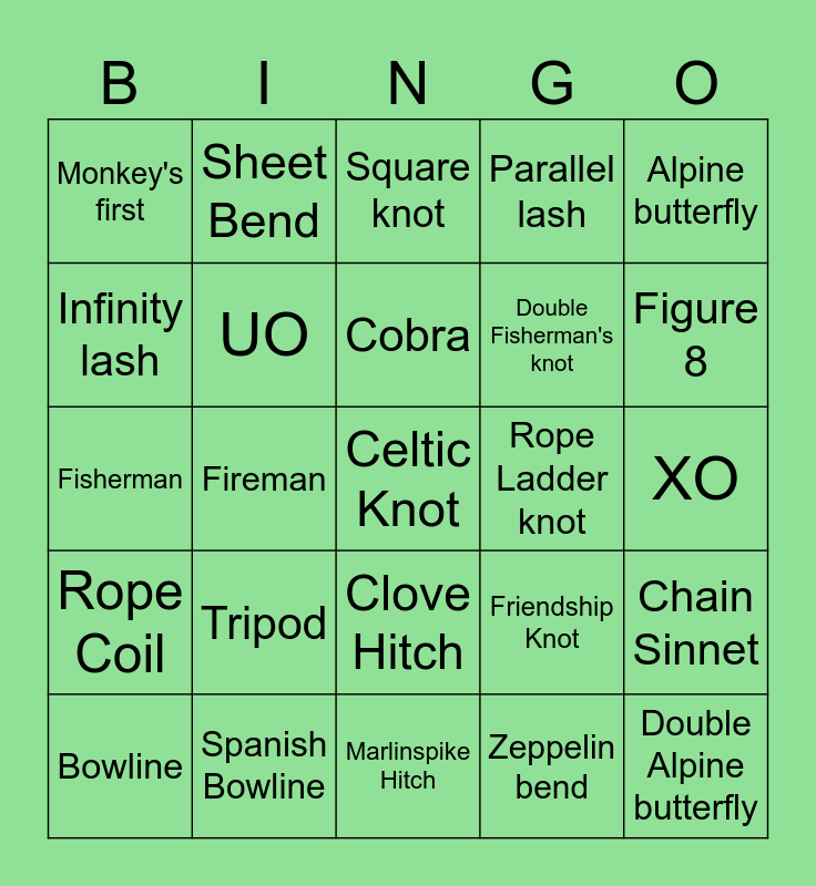 NTXAAX Knot Bingo | TYPE OF KNOTS | Scout Knot Bingo | Scout Knot Bingo | Scout Knot Bingo