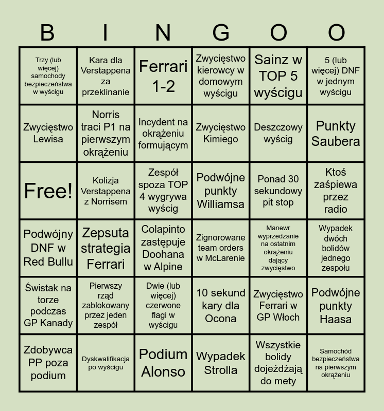 Formuła 1 AD 2025 | f1 Bingo #1 | F1 bingo | F1 BINGO | F1 2025