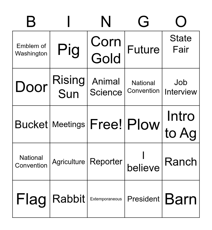 FFA Bingo! | FFA Bingo | FFA Bingo | FFA Week Bingo | FFA Week Bingo
