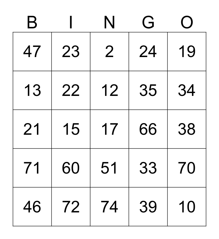 This bingo card has 76 words: Free!, 1, 2, 3, 4, 5, 6, 7, 8, 9, 10, 11, 12, 13, 14, 15, 16, 17, 18, 19, 20, 21, 22, 23, 24, 25, 26, 27, 28, 29, 30, 31, 32, 33, 34, 35, 36, 37, 38, 39, 40, 41, 42, 43, 44, 45, 46, 47, 48, 49, 50, 51, 52, 53, 54, 55, 56, 57, 58, 59, 60, 61, 62, 63, 64, 65, 66, 67, 68, 69, 70, 71, 72, 73, 74 and 75.