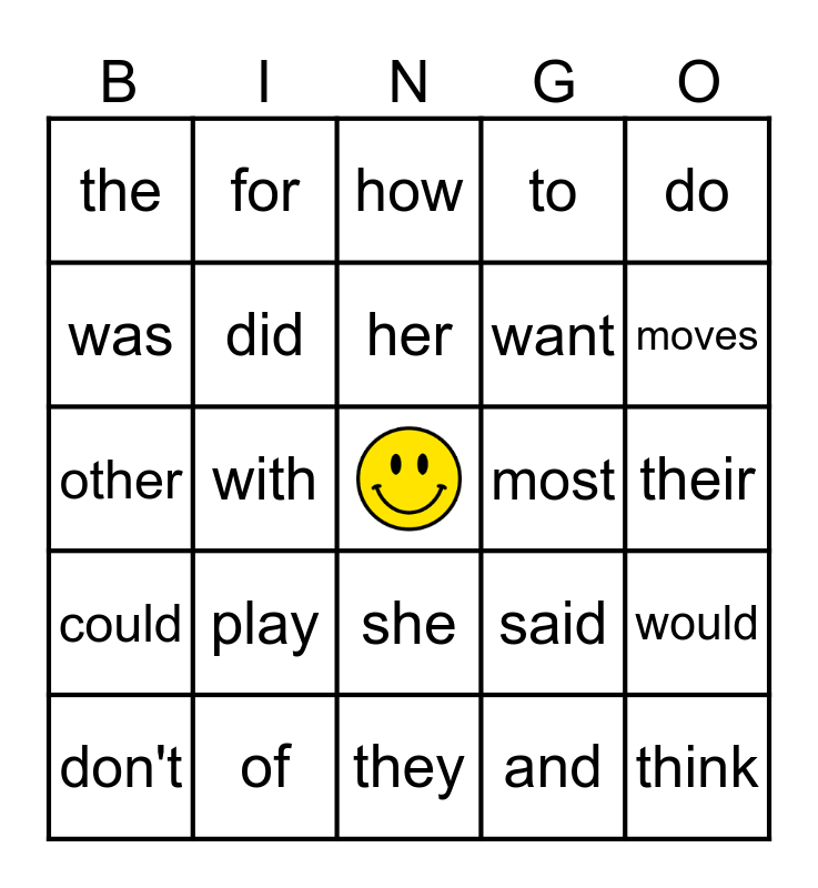 This bingo card has a free space and 34 words: also, and, are, because, could, did, do, don't, for, have, her, how, I, more, most, moves, of, other, play, said, she, than, the, their, they, think, to, two, want, was, why, with, would and isn't.