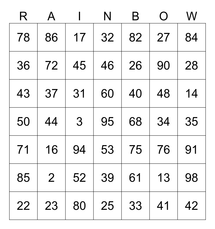 This bingo card has 100 words: 1, 2, 3, 4, 5, 6, 7, 8, 9, 10, 11, 12, 13, 14, 15, 16, 17, 18, 19, 20, 21, 22, 23, 24, 25, 26, 27, 28, 29, 30, 31, 32, 33, 34, 35, 36, 37, 38, 39, 40, 41, 42, 43, 44, 45, 46, 47, 48, 49, 50, 51, 52, 53, 54, 55, 56, 57, 58, 59, 60, 61, 62, 63, 64, 65, 66, 67, 68, 69, 70, 71, 72, 73, 74, 75, 76, 77, 78, 79, 80, 81, 82, 83, 84, 85, 86, 87, 88, 89, 90, 91, 92, 93, 94, 95, 96, 97, 98, 99 and 100.