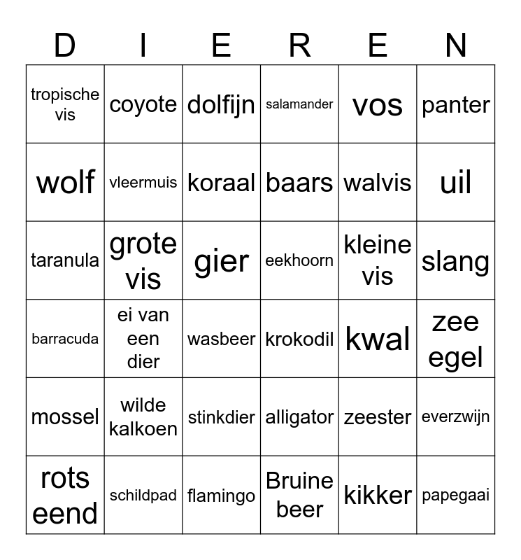 Dierenbingo | Dieren Bingo | Dierenbingo | Dieren | Dieren