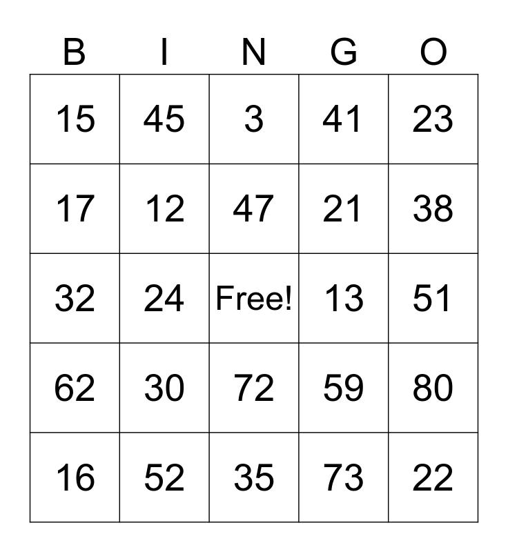 This bingo card has a free space and 82 words: 1, 2, 3, 4, 5, 6, 7, 8, 9, 0, 10, 11, 12, 13, 14, 15, 16, 17, 18, 19, 20, 21, 22, 23, 24, 25, 26, 27, 28, 29, 30, 31, 32, 33, 34, 35, 36, 37, 38, 39, 40, 41, 42, 43, 44, 45, 46, 47, 48, 49, 50, 51, 52, 53, 54, 55, 56, 57, 58, 59, 60, 61, 62, 63, 64, 65, 66, 67, 68, 69, 70, 71, 72, 73, 74, 75, 76, 77, 78, 79, 80 and 81.