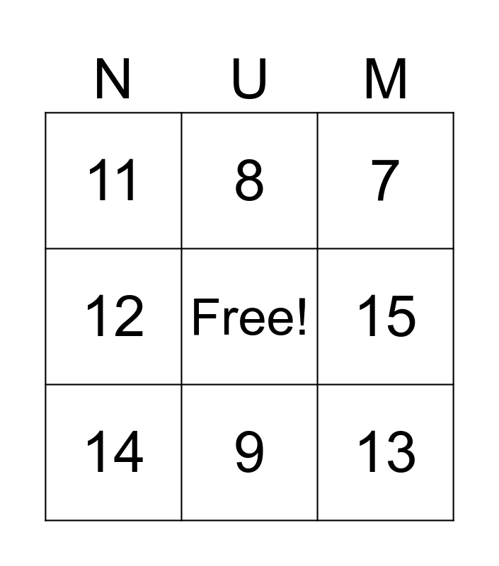 This bingo card has a free space and 12 words: 10, 6, 13, 15, 8, 7, 9, 16, 11, 12, 14 and 5.
