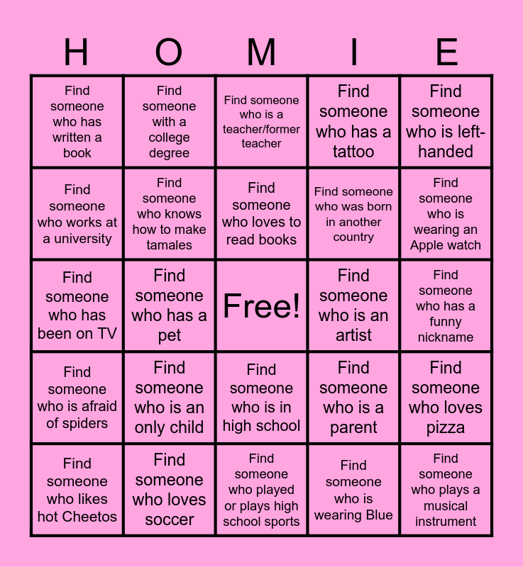 HOMIE | Welcome Back Bingo! | Find Someone Who | Find Someone Who... | Find Someone Who...