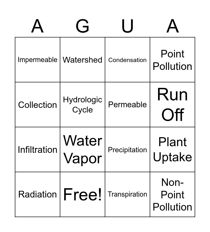 Hydrologic Cycle Review | Vocab Bingo | Water Pollution | Chapter 11 - Water | Watershed 5