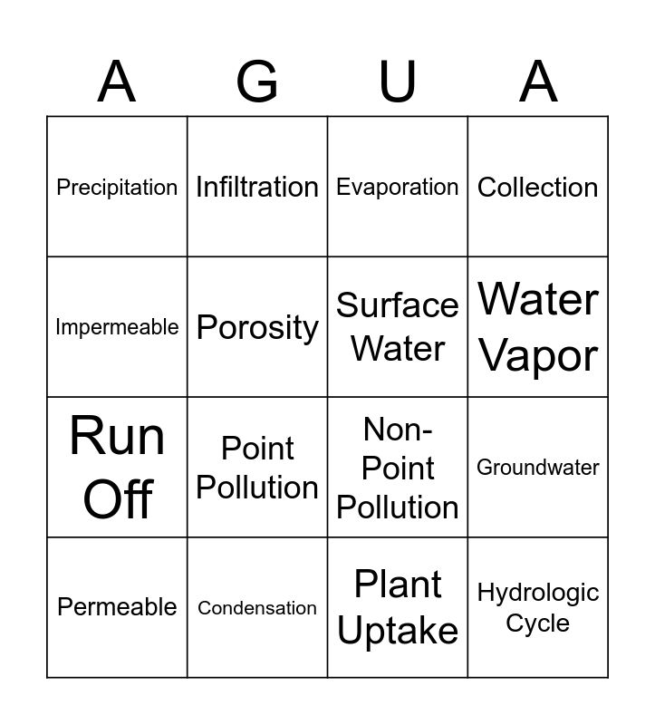 Vocab Bingo | Hydrologic Cycle Review | Water Pollution | Chapter 11 - Water | Watershed 5