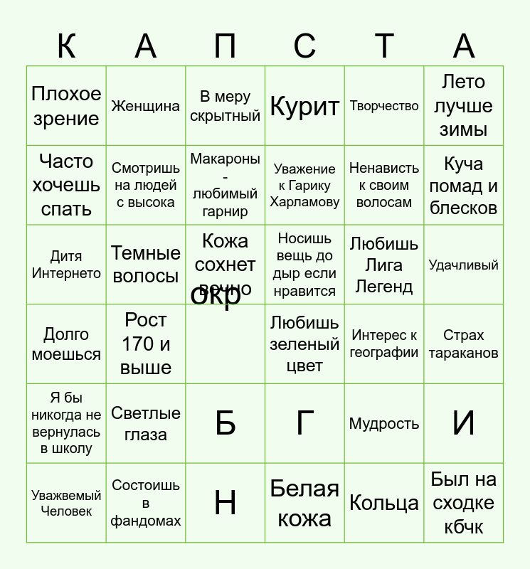 Капусто - бинго | Капусто - бинго | Насколько ты грек | Пуффендуй бинго | насколько ты юва?