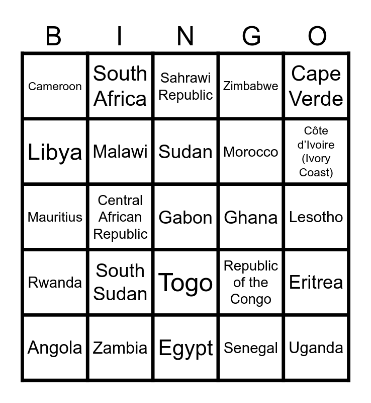Africa | African Countries | Africa Country Bingo | African Countries Bingo | Africa Bingo