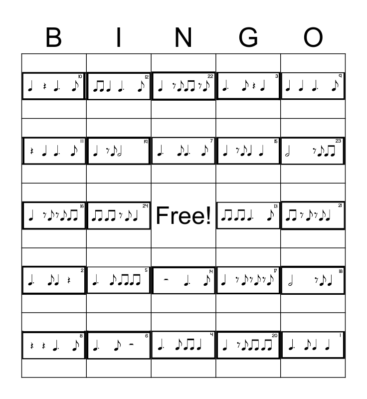 Rhythm Bingo - Level 2 Side A | 4th Grade Band Bingo Bonus Rehearsal | Polynomial Function | 3 Lines (70), 4 Lines (80), 5 Lines (90), 6+ Lines (100) | Polynomial Function