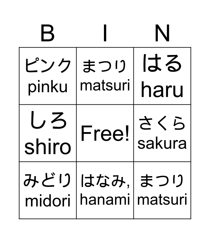 Sakura Matsuri | ひらがなびんご | 日本語のビンゴ | キャラ名ビンゴ | Beginner Bingo 1
