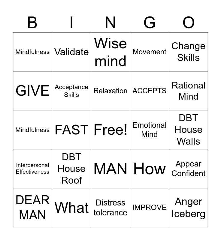 DBT Skills | DBT Skills | DBT Skills | DBT Bingo | DBT Bingo