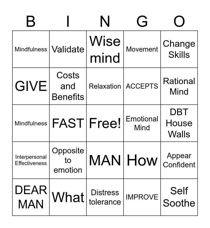 DBT Bingo | Skill Group | DBT Skills Bingo! | DBT Skills Bingo! | DBT Skills Bingo!