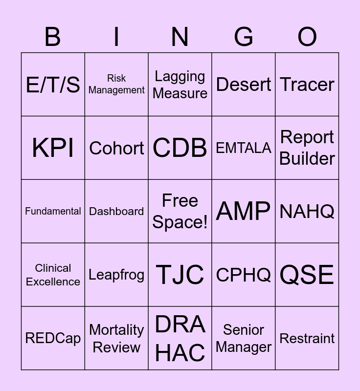 Clinical Excellence Bingo | Quality & Benefits Metrics PMO | Quality Assurance | Quality & Benefit Metrics | Quality Bingo