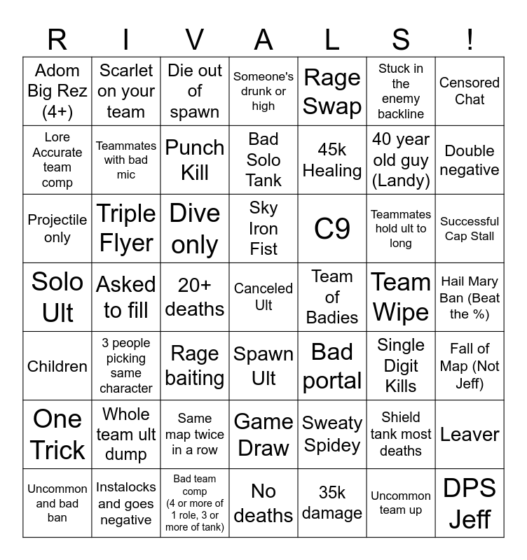 Marvel Rivals Bingo | rivals | rivals | rivals | rivals