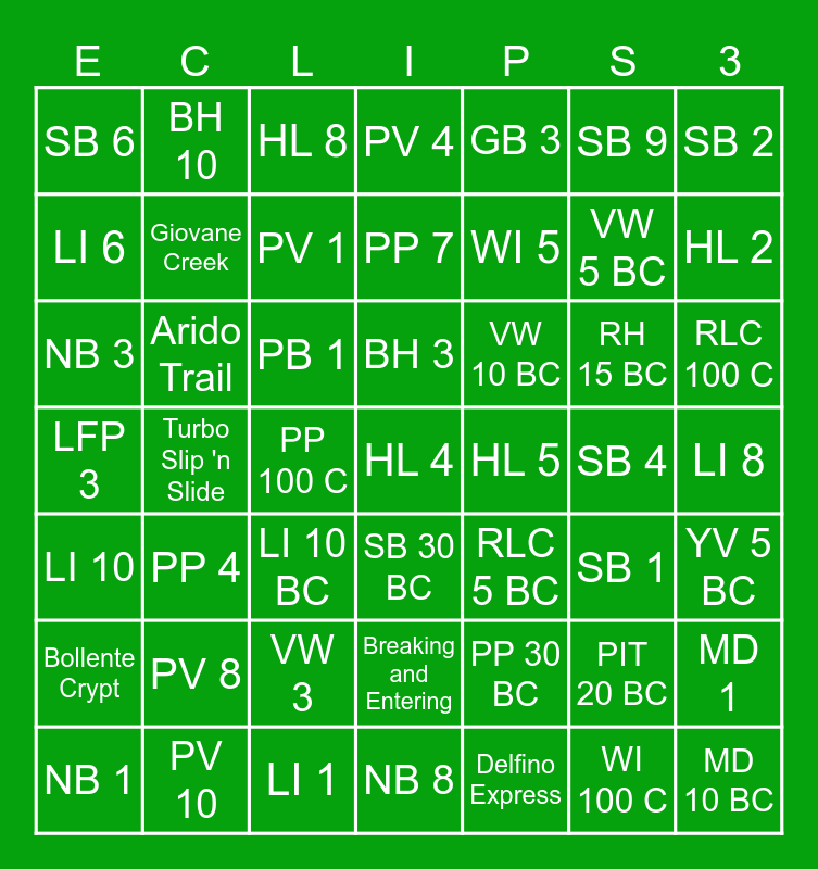 This bingo card has 226 words: BH 1, BH 2, BH 3, BH 4, BH 5, BH 6, BH 7, BH 8, BH 9, BH 10, BH 100 C, BH 15 BC, BH 30 BC, RH 1, RH 2, RH 3, RH 4, RH 5, RH 6, RH 7, RH 8, RH 9, RH 10, RH 100 C, RH 15 BC, RH 30 BC, GB 1, GB 2, GB 3, GB 4, GB 5, GB 6, GB 7, GB 8, GB 9, GB 10, GB 100 C, GB 15 BC, GB 30 BC, PP 1, PP 2, PP 3, PP 4, PP 5, PP 6, PP 7, PP 8, PP 9, PP 10, PP 100 C, PP 15 BC, PP 30 BC, SB 1, SB 2, SB 3, SB 4, SB 5, SB 6, SB 7, SB 8, SB 9, SB 10, SB 100 C, SB 15 BC, SB 30 BC, NB 1, NB 2, NB 3, NB 4, NB 5, NB 6, NB 7, NB 8, NB 9, NB 10, NB 100 C, NB 15 BC, NB 30 BC, PV 1, PV 2, PV 3, PV 4, PV 5, PV 6, PV 7, PV 8, PV 9, PV 10, PV 100 C, PV 15 BC, PV 30 BC, DP 20 BC, CM 10 BC, Big Slide, Pachinko, Red Coin Bird, Turbo Slip 'n Slide, Deadly Lily Pad, Box Smash 1, Box Smash 2, West Bell, East Bell, Shine Gate, Pay the Toll, Breaking and Entering, Delfino Lighthouse, Airstrip Red Coin, ER 1, ER 2, ER 3, ER 4, ER 5, ER 6, ER 7, ER 8, ER 9, ER 10, ER 100 C, ER 10 BC, ER 20 BC, HL 1, HL 2, HL 3, HL 4, HL 5, HL 6, HL 7, HL 8, HL 9, HL 10, HL 100 C, HL 10 BC, HL 20 BC, LI 1, LI 2, LI 3, LI 4, LI 5, LI 6, LI 7, LI 8, LI 9, LI 10, LI 100 C, LI 10 BC, LI 20 BC, WI 1, WI 2, WI 3, WI 4, WI 5, WI 6, WI 7, WI 8, WI 9, WI 10, WI 100 C, WI 10 BC, WI 20 BC, PIT 3 SHINES, PIT 6 SHINES, PIT 100 C, PIT 10 BC, PIT 20 BC, Giovane Creek, Ricco Station, Bollente Crypt, Marea Reef, Delfino Express, Arcobaleno Cove, Sonnolento Grove, Rugivosa Marsh, Arido Trail, DC 5 SHINES, DC 100 C, DC 10 BC, MD 1, MD 2, MD 3, MD 4, MD 100 C, MD 5 BC, MD 10 BC, SC 1, SC 2, SC 3, SC 4, SC 100 C, SC 5 BC, SC 10 BC, VW 1, VW 2, VW 3, VW 4, VW 100 C, VW 5 BC, VW 10 BC, LFP 1, LFP 2, LFP 3, LFP 4, LFP 100 C, LFP 5 BC, LFP 10 BC, RLC 1, RLC 2, RLC 3, RLC 4, RLC 100 C, RLC 5 BC, RLC 10 BC, YV 1, YV 2, YV 3, YV 4, YV 100 C, YV 5 BC, YV 10 BC, PB 1, PB 2, PB 3, PB 4, PB 100 C, PB 5 BC, PB 10 BC and BOWSER 1.