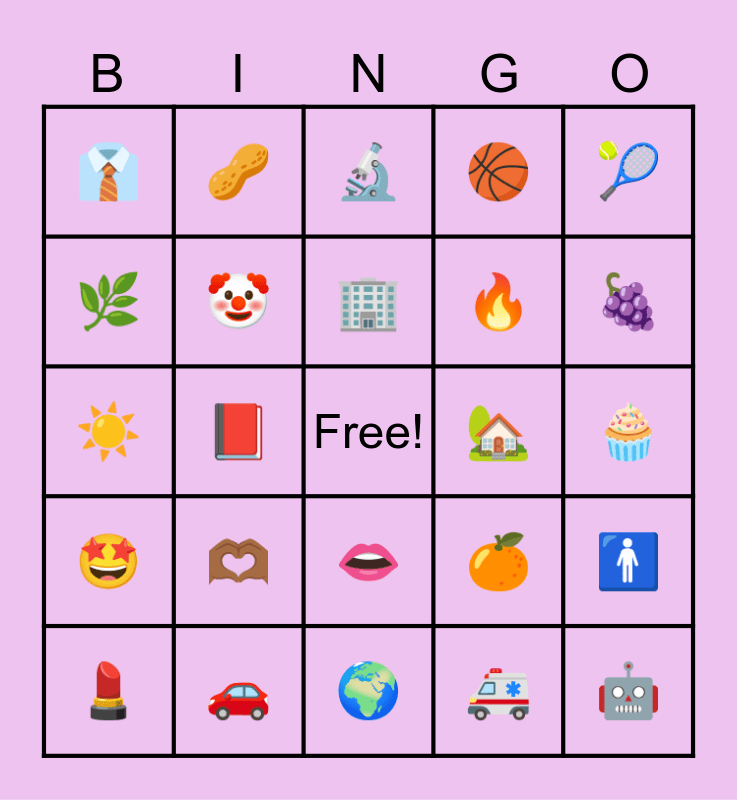 This bingo card has a free space and 124 words: 🏆, 😽, 🐷, 🚑, 🍋, 💄, 🫶🏾, 👶, 🧞♂️, 💪, 📒, ⚖️, 👗, 🤖, 🏳️🌈, 🎭, 👄, 🚕, 🧁, 🌿, 🔶, 🏢, 🏰, 🤵, 🏈, 📕, 🔬, 🎨, 🚹, 👔, 🚗, 🛑, 🍊, 🍇, ☀️, 🚀, 🦄, 👩🍳, 🎃, 🎮, 🥜, 🌍, 🏡, 🥦, 🤝, 🎤, 🐵, 🔥, 🦁, 🏋️♂️, 🚺, 🍏, 📚, 🎾, 🏹, 🚨, 💼, 🏀, 😿, 🤩, 🤡, 📘, 🤑, 💀, 🏆, 😽, 🐷, 🚑, 🍋, 💄, 🫶🏾, 👶, 🧞♂️, 💪, 📒, ⚖️, 👄, 👗, 🤖, 🏳️🌈, 🎭, 🏢, 🚕, 🧁, 🌿, 🔶, 🔬, 🏰, 🤵, 🏈, 📕, 🛑, 🎨, 🚹, 👔, 🚗, 🦄, 🍊, 🍇, ☀️, 🚀, 🌍, 👩🍳, 🎃, 🎮, 🥜, 🐵, 🏡, 🥦, 🤝, 🎤, 🍏, 🔥, 🦁, 🏋️♂️, 🚺, 💼, 📚, 🎾, 🏹, 🚨, 📘, 🏀 and 🤩.