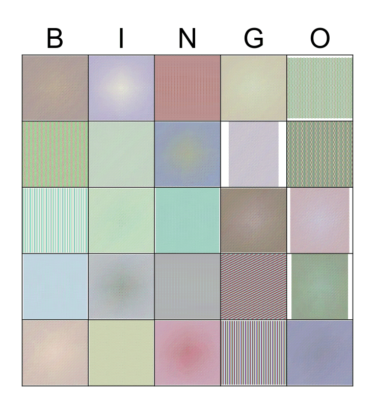 This bingo card has 28 images and a free space.