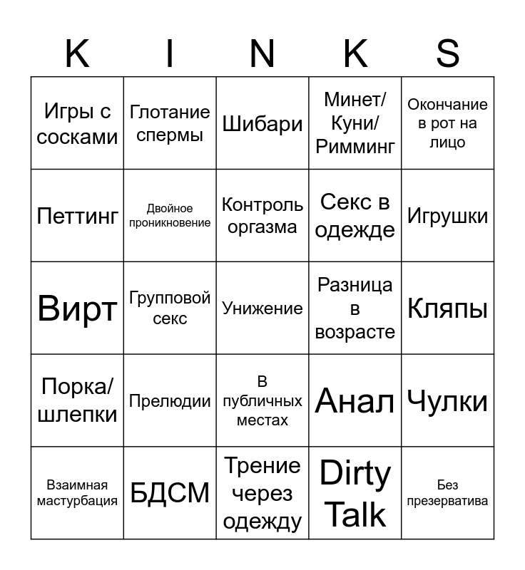 фетиши | секс бинго | КИНК БИНГО | КИНК БИНГО | метки бинго