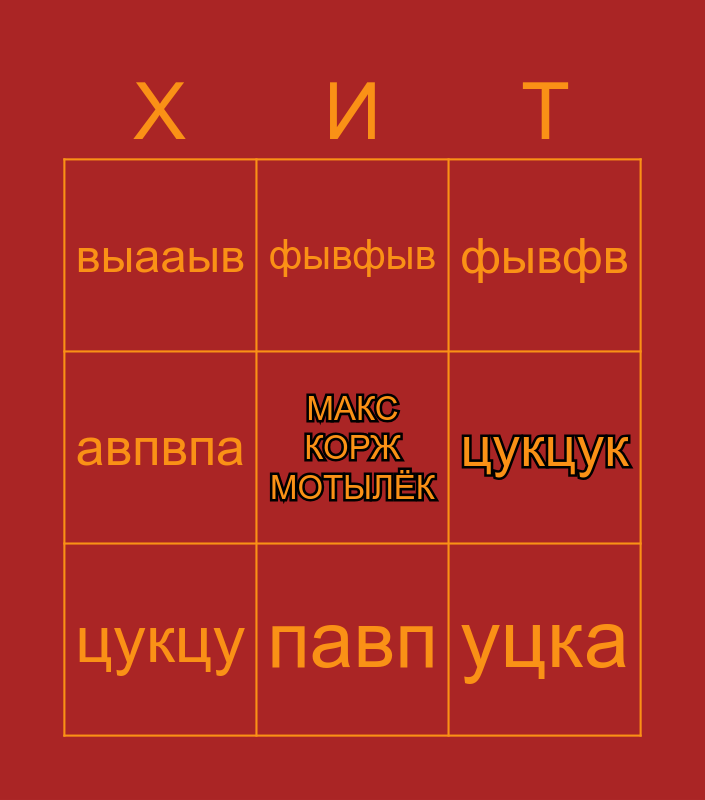 This bingo card has a free space and 8 words: цукцук, фывфв, фывфыв, цукцу, выааыв, уцка, авпвпа and павп.