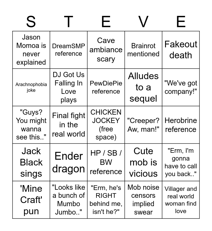 I am steve | Minecraft Movie | Minecraft Movie Bingo | Minecraft Bingo | Mincecraft