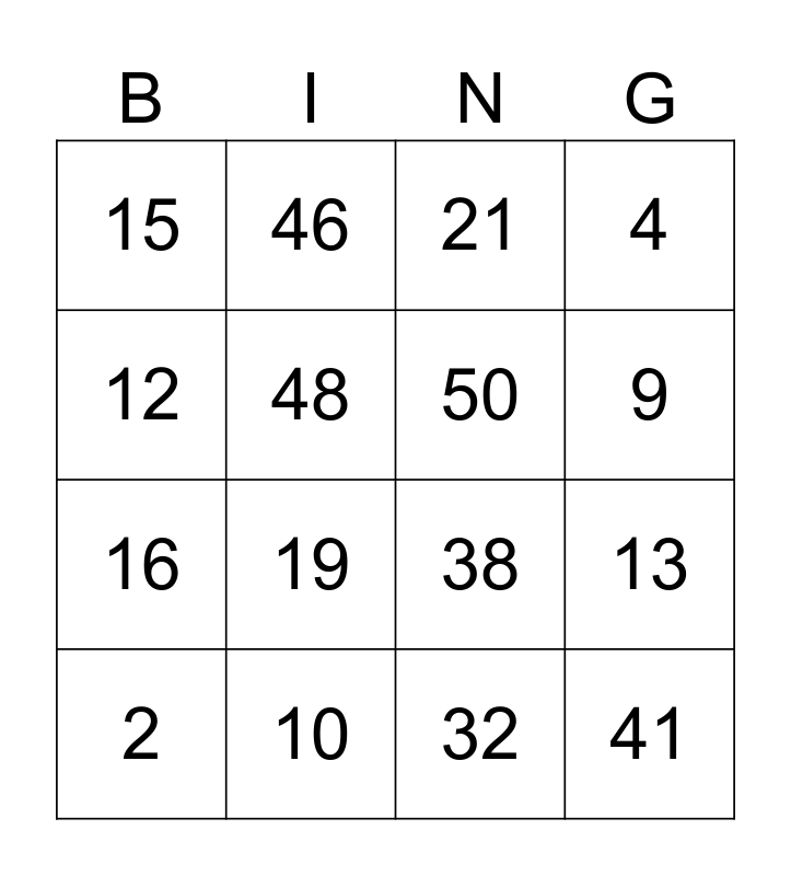 This bingo card has 50 words: 1, 2, 3, 43, 44, 45, 46, 47, 48, 49, 50, 4, 5, 6, 7, 8, 9, 10, 11, 12, 13, 14, 15, 16, 17, 18, 19, 20, 21, 22, 23, 24, 25, 26, 27, 28, 29, 30, 31, 32, 33, 34, 35, 36, 37, 38, 39, 40, 41 and 42.