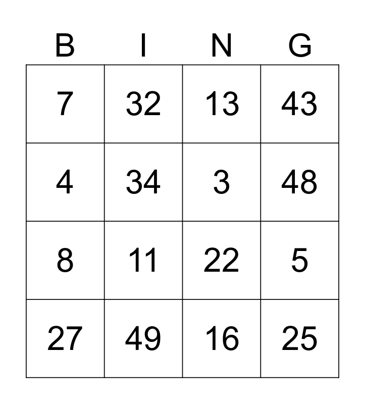 This bingo card has 50 words: 1, 27, 28, 29, 30, 31, 32, 33, 34, 2, 3, 43, 44, 45, 46, 47, 48, 49, 50, 4, 5, 6, 7, 8, 9, 10, 11, 12, 13, 35, 36, 37, 38, 39, 40, 41, 42, 14, 15, 16, 17, 18, 19, 20, 21, 22, 23, 24, 25 and 26.