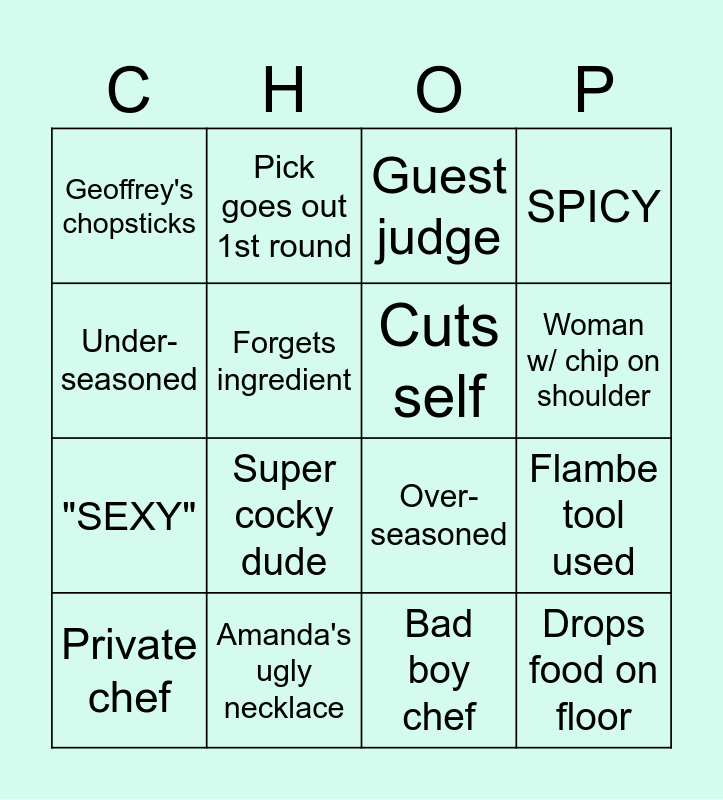 Chopped Bingo | Chopped Challenge Bingo | Chopped Bingo | Chopped Bingo | Chopped Bingo Tohru Jason edition butch’s