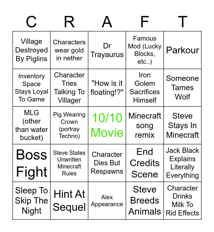 Minecraft Movie Bingo | Minecraft Movie Bingo | Minecraft Movie Bingo | Minecraft | Minecraft Movie Bingo