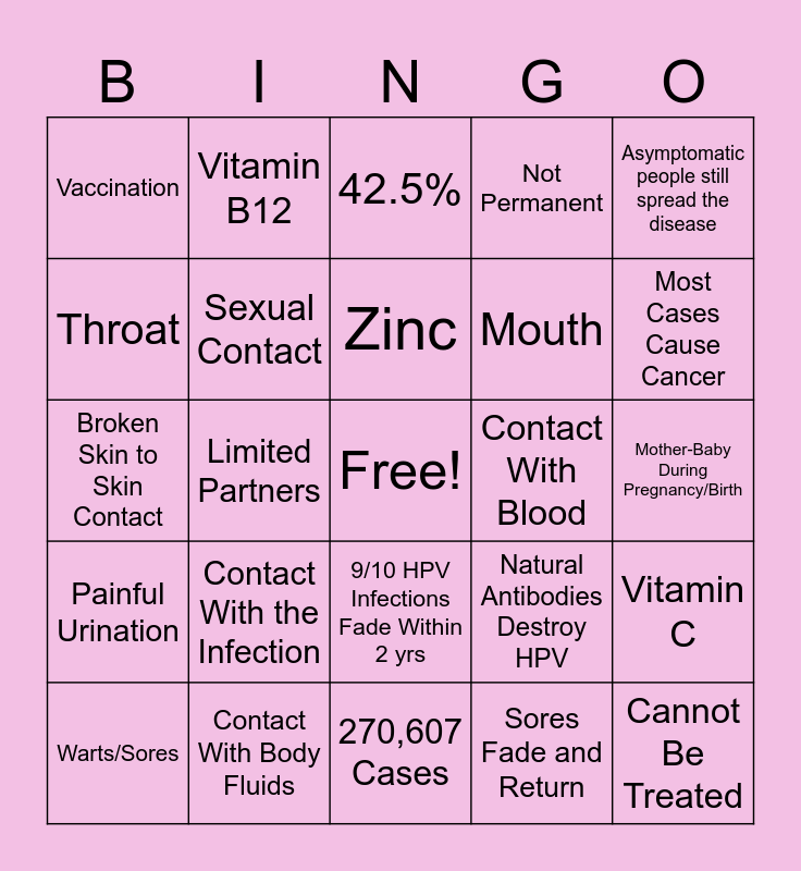 HPV Bingo | Protecting against Infectious Diseases & STI's | BYOF to class | Derma Bingo | Derma Bingo