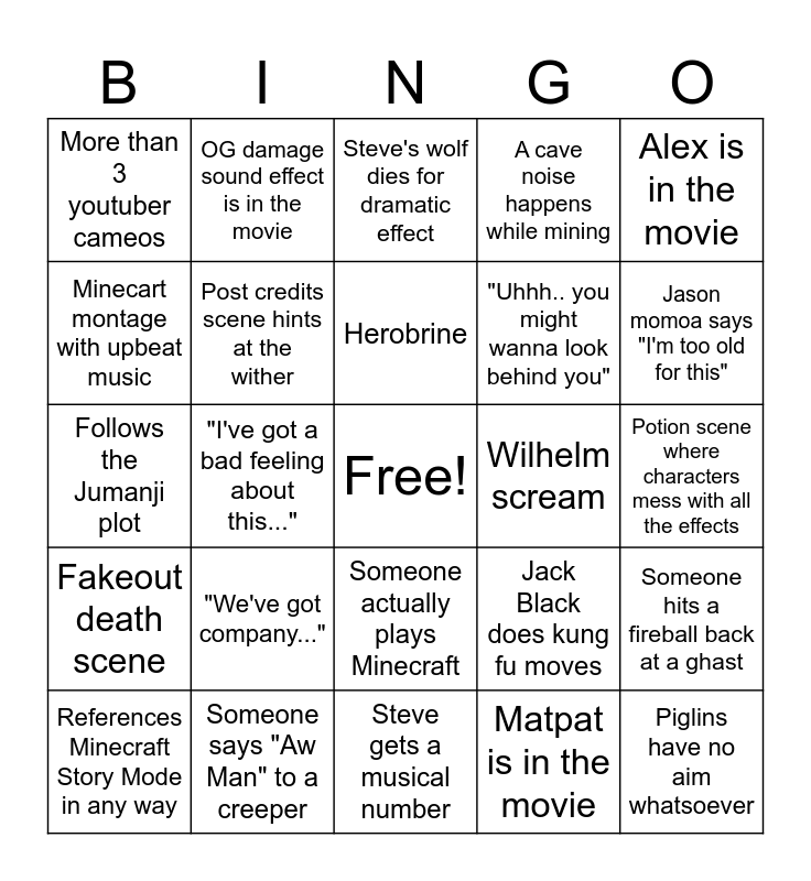 Minecraft Movie Bingo | Minecraft Movie Bingo | Minecraft Movie Bingo | Minecraft Movie Predictions Bingo 2 | There will be Blood bingo