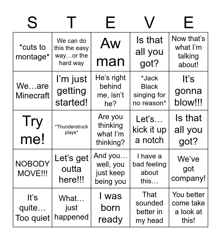 I… am STEVE | Minecraft Movie Bingo | Minecraft Movie Bingo | Minecraft movie bingo | Minecraft Movie Bingk