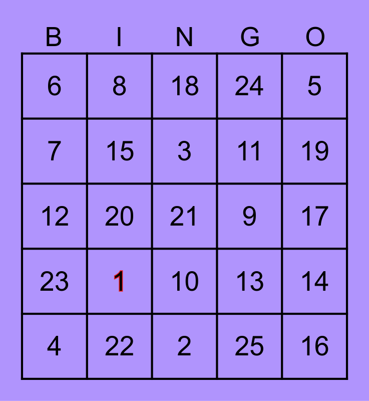 This bingo card has 25 words: 1, 2, 3, 4, 5, 6, 7, 8, 9, 10, 11, 12, 13, 14, 15, 16, 17, 18, 19, 20, 21, 22, 23, 24 and 25.
