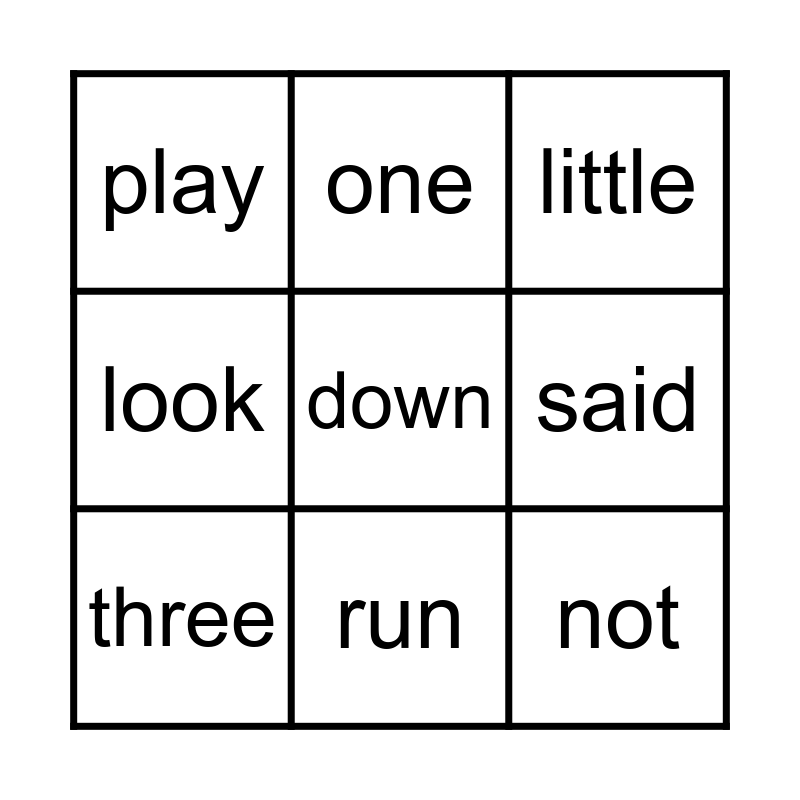 This bingo card has a free space and 8 words: said, little, one, three, play, not, look and run.