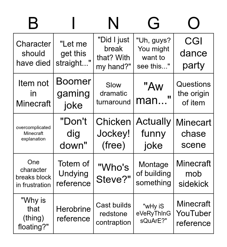 A Minecraft Movie Bingo | Minecraft Movie Bingo | Minecraft Bingo | Minecraft Movie Bingo | Minecraft Movie