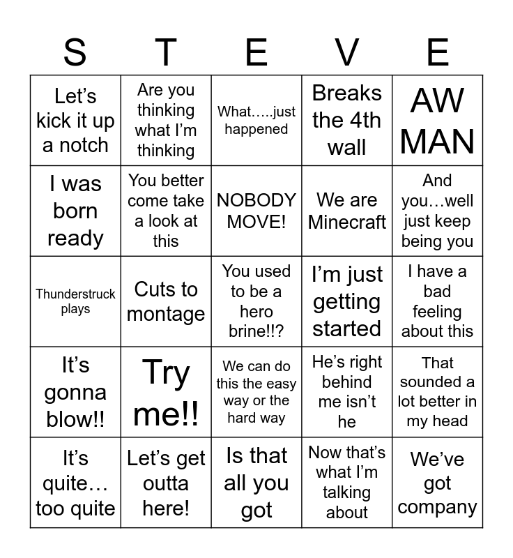 Minecraft Movie Bingo | I… am STEVE | Minecraft Movie Bingo | Minecraft Movie Bingo | Minecraft movie bingo